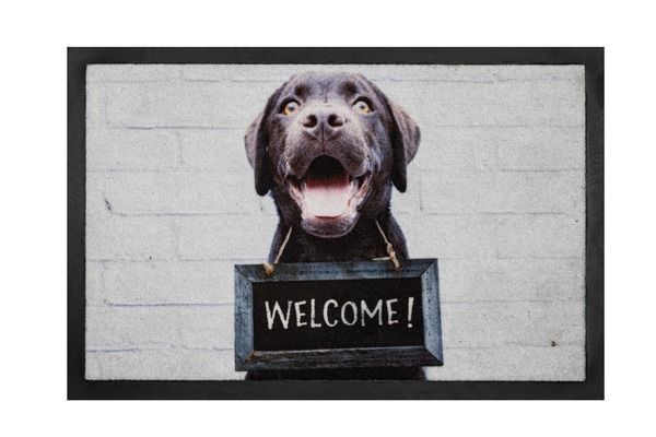 Customised mat, dog and cat on a blanket, made with polyamide fibre to absorb dirt and moisture