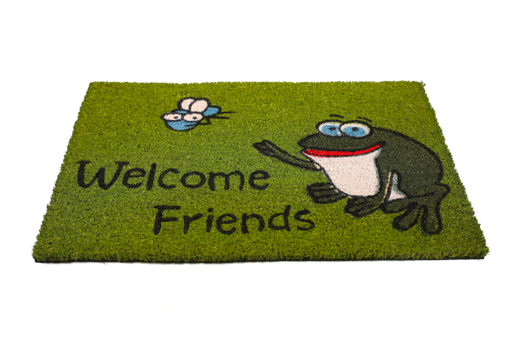 Customized doormat made in Coir, Welcome friends and a frog , to bring back to the ground