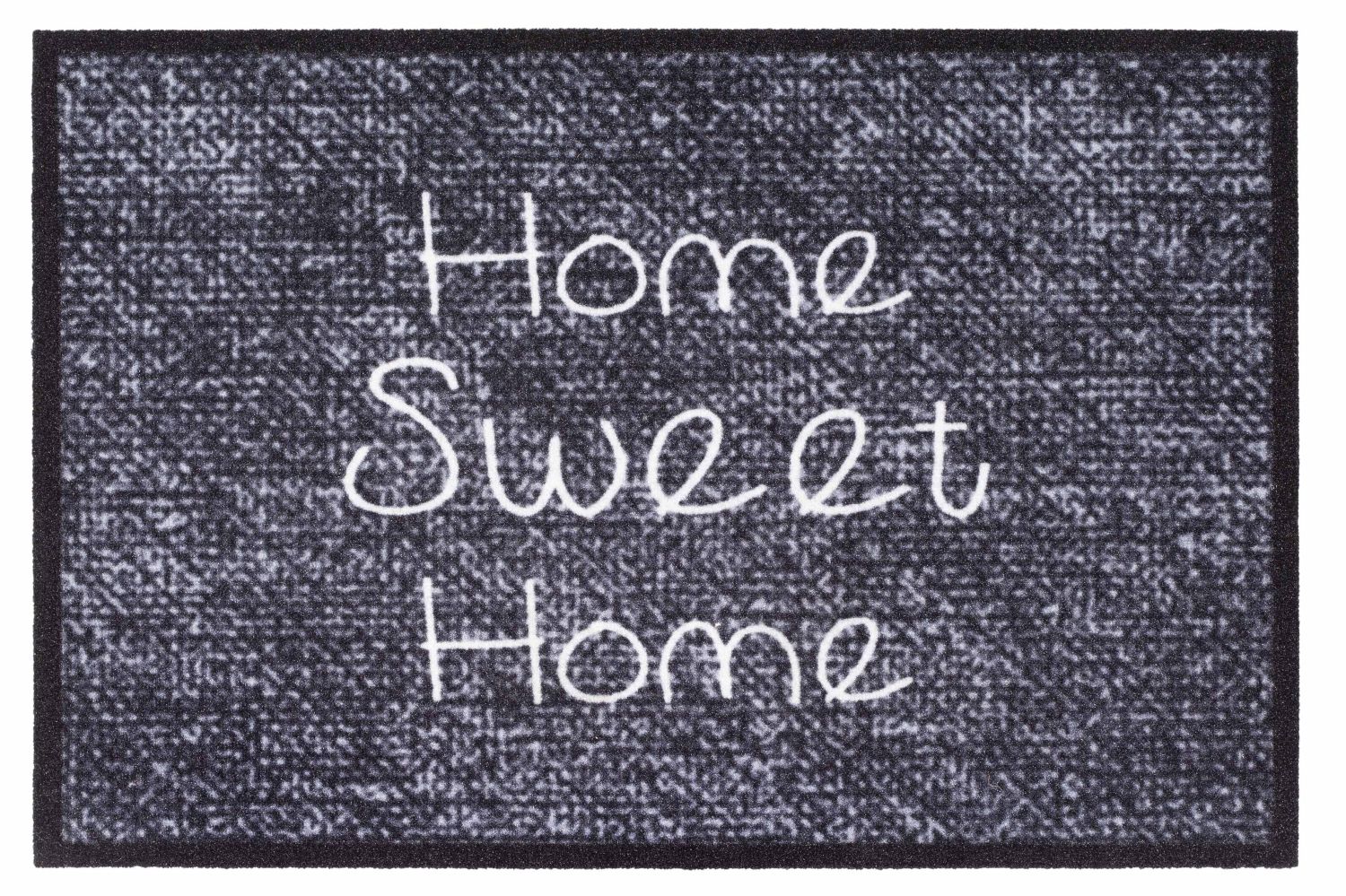 Customised mat, Home sweet home on dark grey fabric effect background, made with polyamide fibre to absorb dirt and moisture
